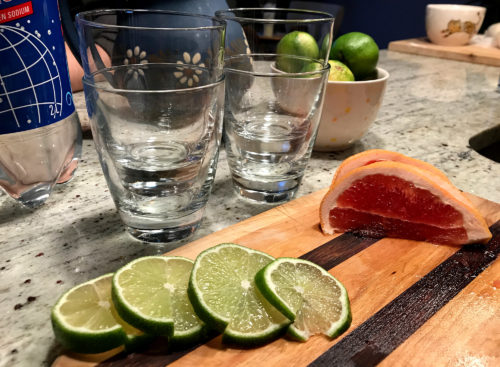 - Garnish with kosher salt, grapefruit slices, lime slices